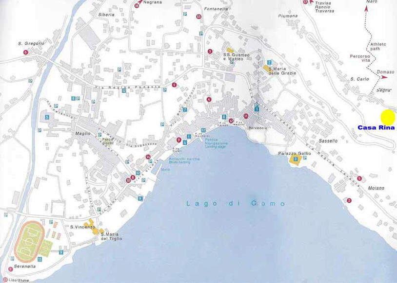 Gravedona ist ein idyllischer alter Fischerort mit einer Piazza mit Wochenmarkt direkt am See und zählt zu den schönsten Orten des Lago di Como. Man findet hier mehrere Ristorantes/Pizzerien, sowie kleine Lebensmittelgeschäfte, die man bequem zu Fuss¸ erreichen kann. Ebenso die Schiffsanlegestelle, die Sie auch ohne Auto in viele Orte am See führt. Das unterhalb der Uferstrasse und am See gelegene Ortszentrum verläuft teilweise steil und mit für den Comer See typischen idyllischen Gassen an der malerischen Bucht von Gravedona entlang. Am Ortsende befindet sich die wenig bebaute und flache Landzunge "Poncia" mit herrlichen Stränden nahe der Flussmündung und mit der Uferpromenade-Spazierweg bis nach Dongo.